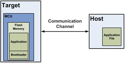 The Bootloader component is responsible for managing the firmware update process. It communicates with the host, receives firmware data, programs flash memory, and determines whether the application is valid before execution.